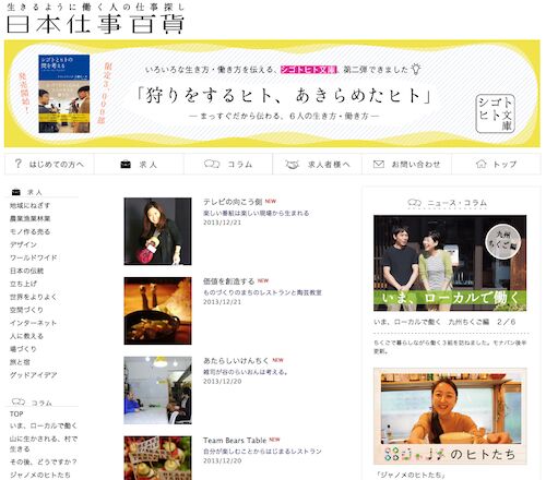 生きるように働く人の仕事探し「日本仕事百貨」 このサイトは仕事の求人情報を掲載している、いわゆる求人サイトなのですが、その求人情報の紹介の仕方に特徴があって、ただ会社情報を箇条書きに掲載したような従来の求人サイトと違って、コラム的に語りかけ…